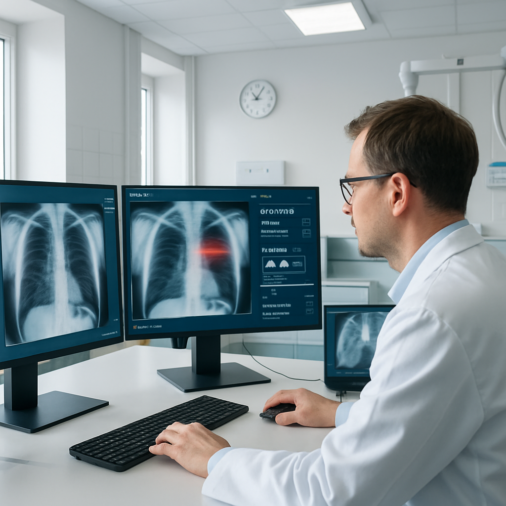 V Sloveniji je Univerza v Ljubljani v sodelovanju z UKC Ljubljana razvila AI sistem za pomoč pri odkrivanju raka pljuč na rentgenskih posnetkih. Sistem analizira slike v nekaj sekundah in zdravniku poda oceno tveganja ter označuje sumljiva območja, ki potrebujejo dodatno pozornost.