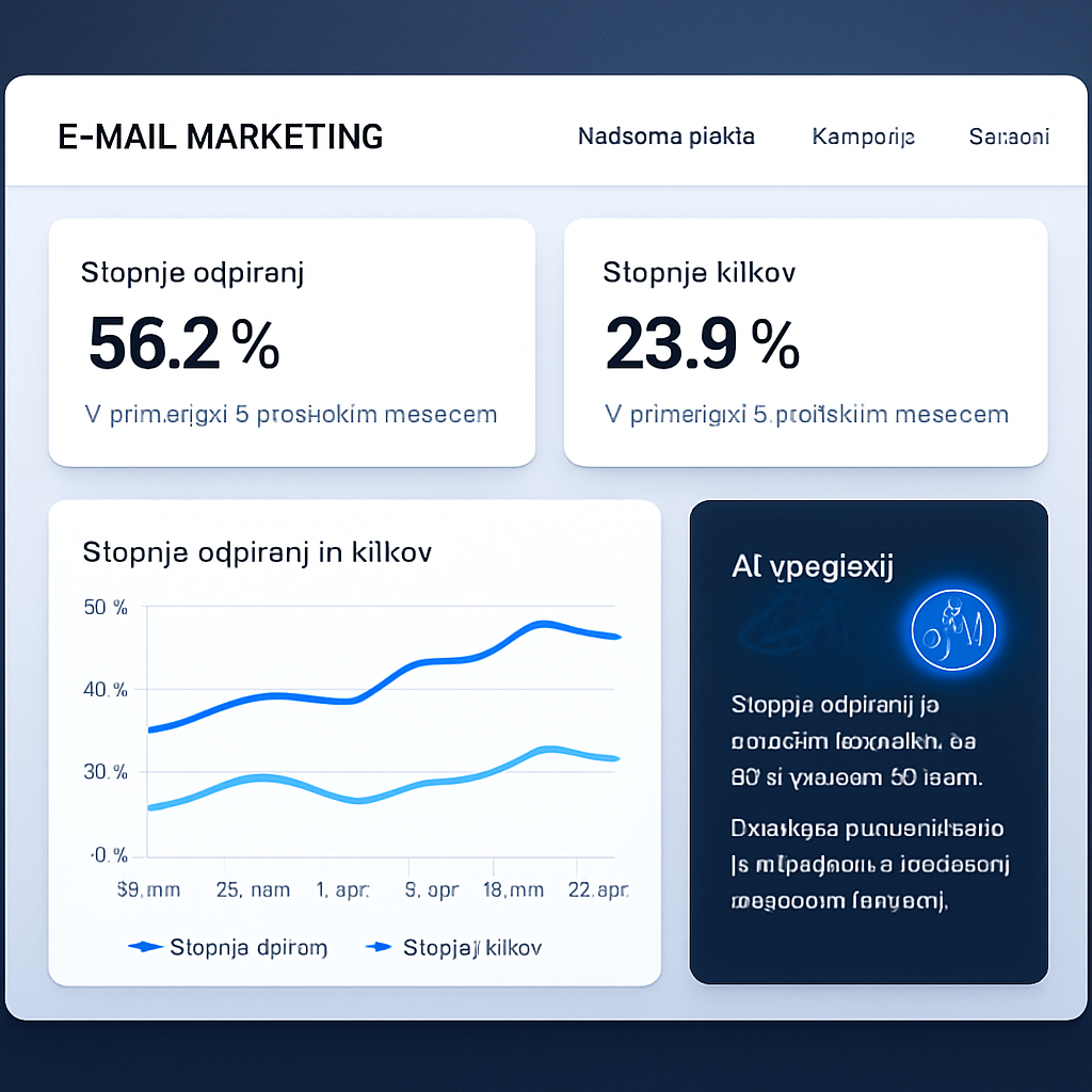 Analiza podatkov: AI algoritmi analizirajo tisoče uspešnih email kampanj in prepoznajo vzorce, ki delujejo v specifičnem slovenskem kontekstu. Namesto generičnih »Ne zamudite te priložnosti« AI predlaga specifične, personalizirane naslove.