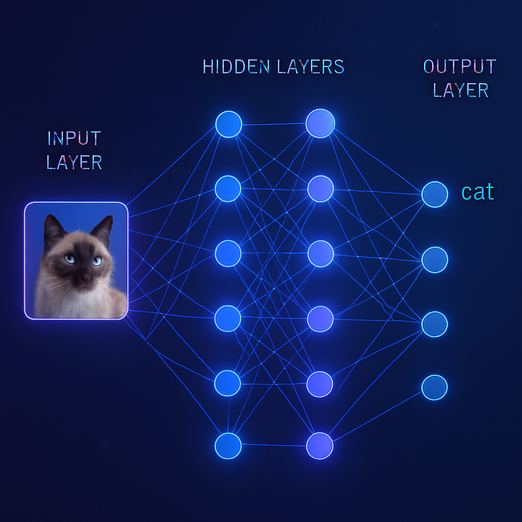 - Izhodne plasti, ki poda končni rezultat (npr. "to je mačka" ali "to je pes")
